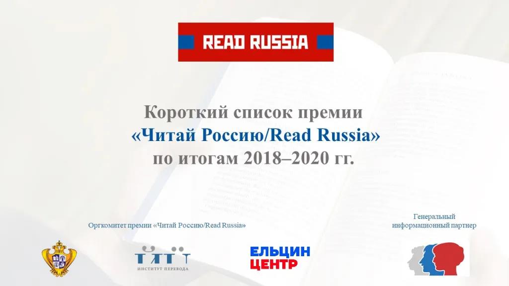 “閱讀俄羅斯”文學(xué)翻譯獎(jiǎng)由非營利組織——俄羅斯翻譯研究院于2011年設(shè)立,每兩年頒發(fā)一次,獎(jiǎng)勵(lì)其間出版的最優(yōu)秀的俄羅斯文學(xué)翻譯作品。“閱讀俄羅斯”獎(jiǎng)下設(shè)四個(gè)獎(jiǎng)項(xiàng):詩歌、俄羅斯經(jīng)典文學(xué)、20世紀(jì)俄羅斯文學(xué)(1990年前創(chuàng)作的作品)和當(dāng)代俄羅斯文學(xué)(1990年后創(chuàng)作的作品)。