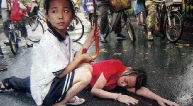 當(dāng)時(shí)雨中一位騎車女子突然跌倒在地昏迷不醒,周圍有一些大人看了幾眼就走了,而曹婉婷卻撐傘蹲在地上守護(hù)著這位陌生的姐姐。杭州網(wǎng)友“傲骨柔腸”在街頭拍下這感人一幕,引來眾多網(wǎng)民熱轉(zhuǎn),在天涯、貓撲等論壇的圖片熱議排行榜上連續(xù)多天位居首位。