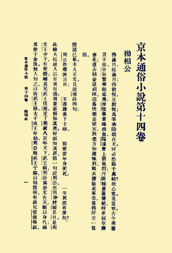 張瑞田編《龍榆生師友書札》(浙江古籍出版社,2019年)內(nèi)收有一通周作人手札,信中向龍榆生討教道:“日前王古魯君來談,宋人詞話《拗相公》中引‘周公恐懼流言日’一絕句,問為誰作,手頭只有一部《唐人千首絕句》,遍查不得,直覺此詩似是宋人口吻,卻亦無從證明,不知兄記得其撰人名氏否,乞便中示及為幸?!碧岬降哪瞧八稳嗽~話《拗相公》”,收錄在《京本通俗小說》卷十四,又見于馮夢龍所編《警世通言》第四卷,而改題為“拗相公飲恨半山堂”。小說甫一開始,“未入正文,且說唐詩四句:周公恐懼流言日,王莽謙恭下士時(shí)。假使當(dāng)時(shí)身便死,一生真?zhèn)斡姓l知?”接著總結(jié)該篇主旨,“此詩大抵說人品有真有偽,須要惡而知其美,好而知其惡”。在不厭其煩地仔細(xì)疏釋詩中所用周公、王莽的相關(guān)典故后,小說又進(jìn)而強(qiáng)調(diào),“所以古人說:‘日久見人心?!值溃骸w棺論始定?!豢梢砸粫r(shí)之譽(yù),斷其為君子;不可以一時(shí)之謗,斷其為小人”,隨后才進(jìn)入主題,講述“拗相公”王安石的故事。王古魯早年只身遠(yuǎn)赴東瀛,探訪過大批珍稀小說資料,其后又整理校注過馮夢龍所編《全像古今小說》(商務(wù)印書館,1947年),如今想要深入查考小說中的這個(gè)細(xì)節(jié),自屬其治學(xué)范圍內(nèi)的本分??磥碇茏魅藢@首詩的出處也很好奇,可惜經(jīng)過一番認(rèn)真翻檢,依然未能探得其淵源所自。