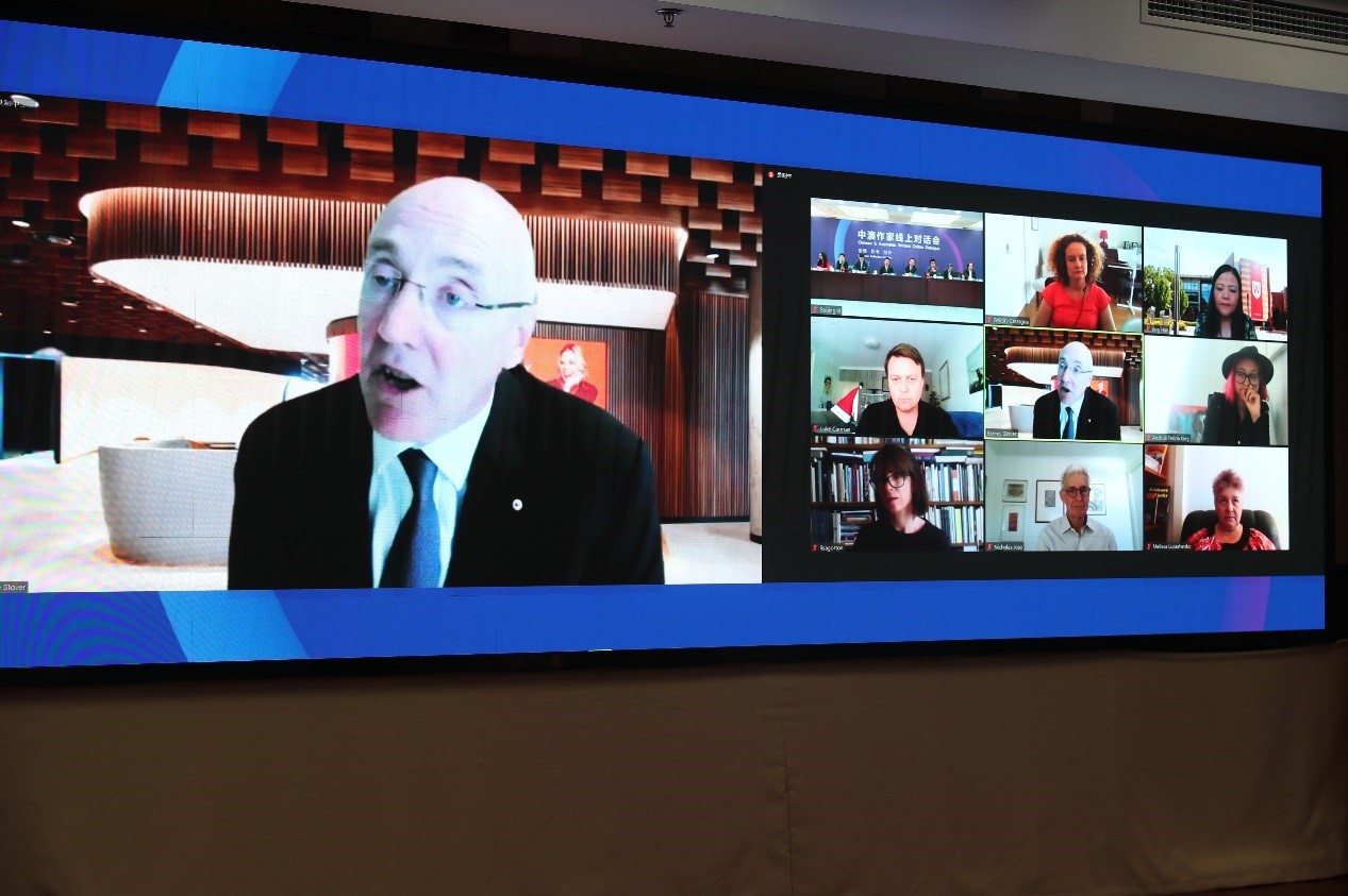 閻晶明在致辭中代為轉(zhuǎn)達(dá)了中國(guó)作協(xié)主席鐵凝對(duì)中澳兩國(guó)作家朋友們的真誠(chéng)問(wèn)候。他表示,在新冠疫情肆虐的情況下,中國(guó)作協(xié)和中國(guó)作家與各國(guó)同行們保持密切聯(lián)系,開(kāi)展作品互譯、出版,交流抗疫主題的詩(shī)文,相互鼓勵(lì),積極探索疫情下文學(xué)交流的新形式。今天,中澳兩國(guó)作家第一次通過(guò)視頻連線進(jìn)行對(duì)話,分享在疫情之下對(duì)文學(xué)、人生、世界的獨(dú)特體驗(yàn)和思索。他希望大家能在疫情的痛苦中,用文學(xué)的甘甜去浸潤(rùn)心靈,相互啟發(fā),有所收獲,為共同熱愛(ài)的文學(xué)事業(yè)賦予新的能量。他期待中澳兩國(guó)作家能一道探索文學(xué)交流的新領(lǐng)域和新模式,豐富交流的內(nèi)容和形式,在差異中探尋共性,在包容中尊重多元,不斷深化兩國(guó)作家之間的文學(xué)交往與合作,譜寫(xiě)中澳文學(xué)交流和人民友好的新篇章。他相信,這次對(duì)話會(huì)將成為中澳文學(xué)交流之生命力的見(jiàn)證和兩國(guó)作家共克時(shí)艱的見(jiàn)證。