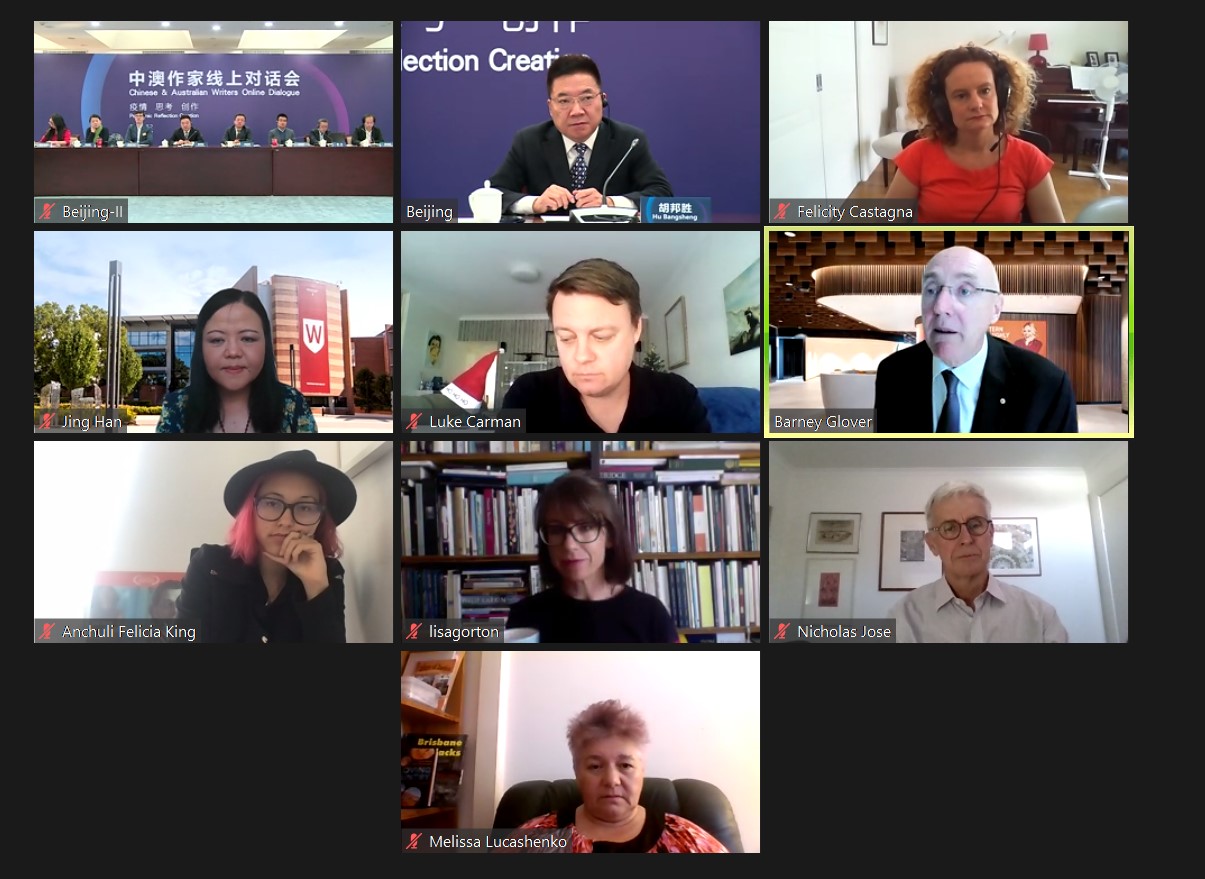 12月10日,由中國(guó)作家協(xié)會(huì)和澳大利亞西悉尼大學(xué)共同主辦的“中澳作家線上對(duì)話會(huì)”舉行。中國(guó)作協(xié)副主席閻晶明,西悉尼大學(xué)校長(zhǎng)葛班尼,中澳文學(xué)交流使者尼古拉斯·周思,中國(guó)作家徐則臣、周曉楓、韓松、唐家三少、霍俊明、鮑爾金娜,澳大利亞作家梅麗莎·盧克申科、麗莎·戈頓、費(fèi)利西蒂·卡斯塔尼亞、盧克·卡曼、金婉婷等參加對(duì)話會(huì),兩國(guó)作家圍繞著“疫情·思考·創(chuàng)作”這一主題展開(kāi)交流。對(duì)話會(huì)由中國(guó)作協(xié)書(shū)記處書(shū)記胡邦勝主持。