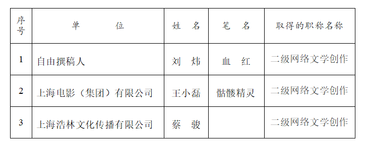 2020年度上海市文學(xué)創(chuàng)作系列網(wǎng)絡(luò)文學(xué)專業(yè)高級(jí)技術(shù)職稱評(píng)審?fù)ㄟ^人員名單公示