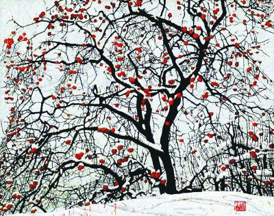 靜雪潤紅(漆畫)白斌