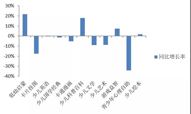 2020年少兒圖書各細分同比增長率