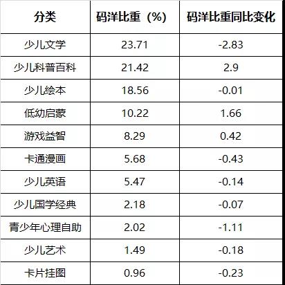 少兒圖書市場持續(xù)增長,同比增長率為1.96%。