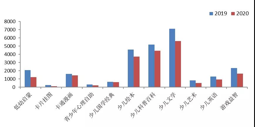 2019~2020年少兒細分市場新書品種數(shù)