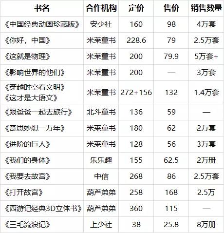 與此同時,一些專注少兒圖書出版的中小型童書工作室開始崛起,如狐貍家、米萊童書、段張取藝等機構。這些機構成立時間不長,并且以一個小的品類切入童書市場,自主研發(fā)童書,都有暢銷的代表作。成立2年半米萊童書(品牌故事請戳)專注于少兒科普領域,自主研發(fā)了12套圖書,其銷量均超過5萬套;合肥狐貍家(品牌故事請戳),成立3年,出版的《西游記繪本》累計銷量60萬冊;《哇!歷史原來是這樣》上市一個月銷售突破10萬冊。