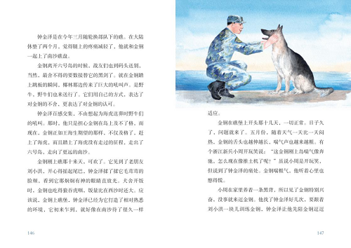 《藍(lán)海金鋼》在文本和插圖上,都盡可能地做到兼顧嚴(yán)謹(jǐn)與美感。小到臂章、軍銜和軍服,大到全書情節(jié)的安排、情感的推進(jìn)回旋,無不在編輯關(guān)注的范圍。該書的責(zé)任編輯在編輯加工過程中曾多次向作者以及部隊(duì)?wèi)?zhàn)士請(qǐng)教,盡力還原事件發(fā)生的時(shí)代、時(shí)段,當(dāng)時(shí)的環(huán)境條件,每個(gè)情節(jié)、每張插圖、每個(gè)術(shù)語,都與作者認(rèn)真討論,經(jīng)作者親自確認(rèn)。為了全書的不到20張插圖,責(zé)編前后查找了幾千張相關(guān)的照片,中國(guó)軍網(wǎng)、南海研究論壇、解放軍新聞傳播中心等網(wǎng)站。雖然是文學(xué)作品,但在知識(shí)層面不可隨意,這部小說很可能幫孩子建立起對(duì)海軍、南海和軍犬的印象,甚至是孩子接觸相關(guān)領(lǐng)域的第一本書。