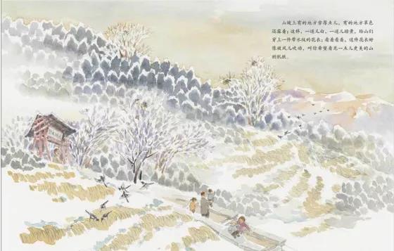 這是一本能夠充分體現(xiàn)繪本魅力的作品。老舍先生的散文《濟南的冬天》是小時候在課本中就讀過的,文字之雅自不必說,但作為一篇寫景的文章,按常理想來是很難作為繪本的素材的,濟南本土畫家楊鵓卻另辟蹊徑,從老舍的文字出發(fā),結(jié)合自己的記憶和觀察,用全知視角對近百年前的濟南城做了一次純美的紙上再現(xiàn)。