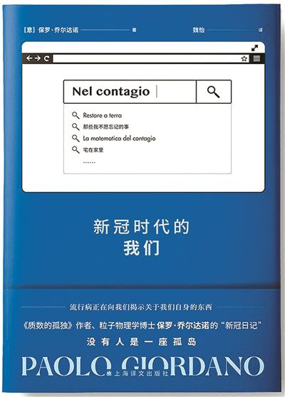 從《質(zhì)數(shù)的孤獨》到《新冠時代的我們》,也就過去了十年,喬爾達(dá)諾卻不得不暫時從“我”的世界里掙脫出來了。雖然這本新書的意大利原文Nel contagio直譯過來是“處在傳染之中”的意思,但顯然,敏銳的譯者注意到這個短語所指向的那個隱而未見的對象,是“我們”,或者說是以我們每個人為單位的這個社會共同體?!白鳛閱虪栠_(dá)諾的我”選擇了“處在新冠時代的我們”這樣一個寫作對象,作家由此獲得了一個從集體性的他者出發(fā)反觀自我的全新視角。