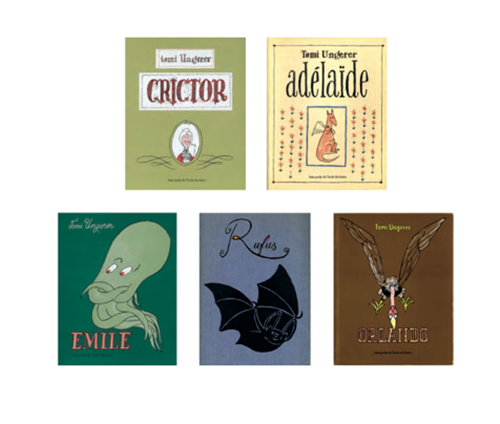 其次,溫格爾童書的主角大多是之前從未在童書上出現(xiàn)過的,與可愛無關、甚至讓人們反感的動物——蟒蛇克里克塔(Crictor),章魚多多(Emile),袋鼠阿朵萊朵(Adelaide),蝙蝠魯弗斯(Rufus),禿鷲奧蘭多(Orlando)……