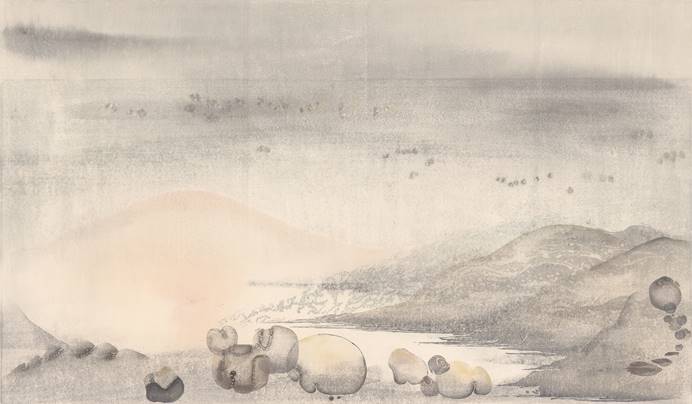 作者王霄《略帶表情的風(fēng)景之人型石》 75*45cm 木板水印 2014年