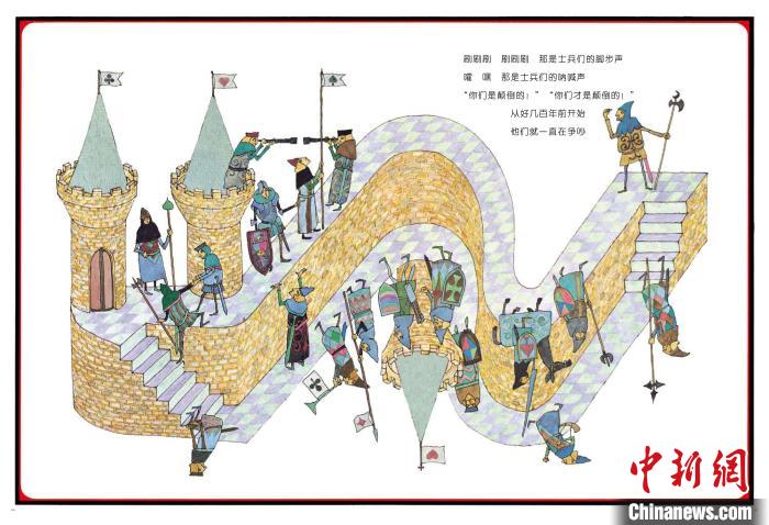 非凡的想象是安野光雅作品最鮮明的特征。他的處女作《奇妙國》充滿了各種各樣天馬行空的想象,他還大玩視覺游戲,運(yùn)用矛盾圖形、透視、空間錯(cuò)位等手法,建構(gòu)出一個(gè)現(xiàn)實(shí)中不可能存在,但又合乎空間邏輯的奇妙世界,大膽的想象與周密的設(shè)計(jì)令人嘆為觀止,這樣的創(chuàng)作方式在同時(shí)期的兒童繪本中并不常見。此外,他還極為先鋒地將數(shù)理知識(shí)融入繪本,做到了藝術(shù)性和科學(xué)性的完美結(jié)合?!额嵉箛纷鳛椤镀婷顕返逆⒚闷?,就將地理知識(shí)融入了故事敘述之中,運(yùn)用鏡像般的圖畫語言,向讀者展示了一個(gè)光怪陸離的顛倒世界。幽默的故事背后,還暗含了“相對”的哲理。