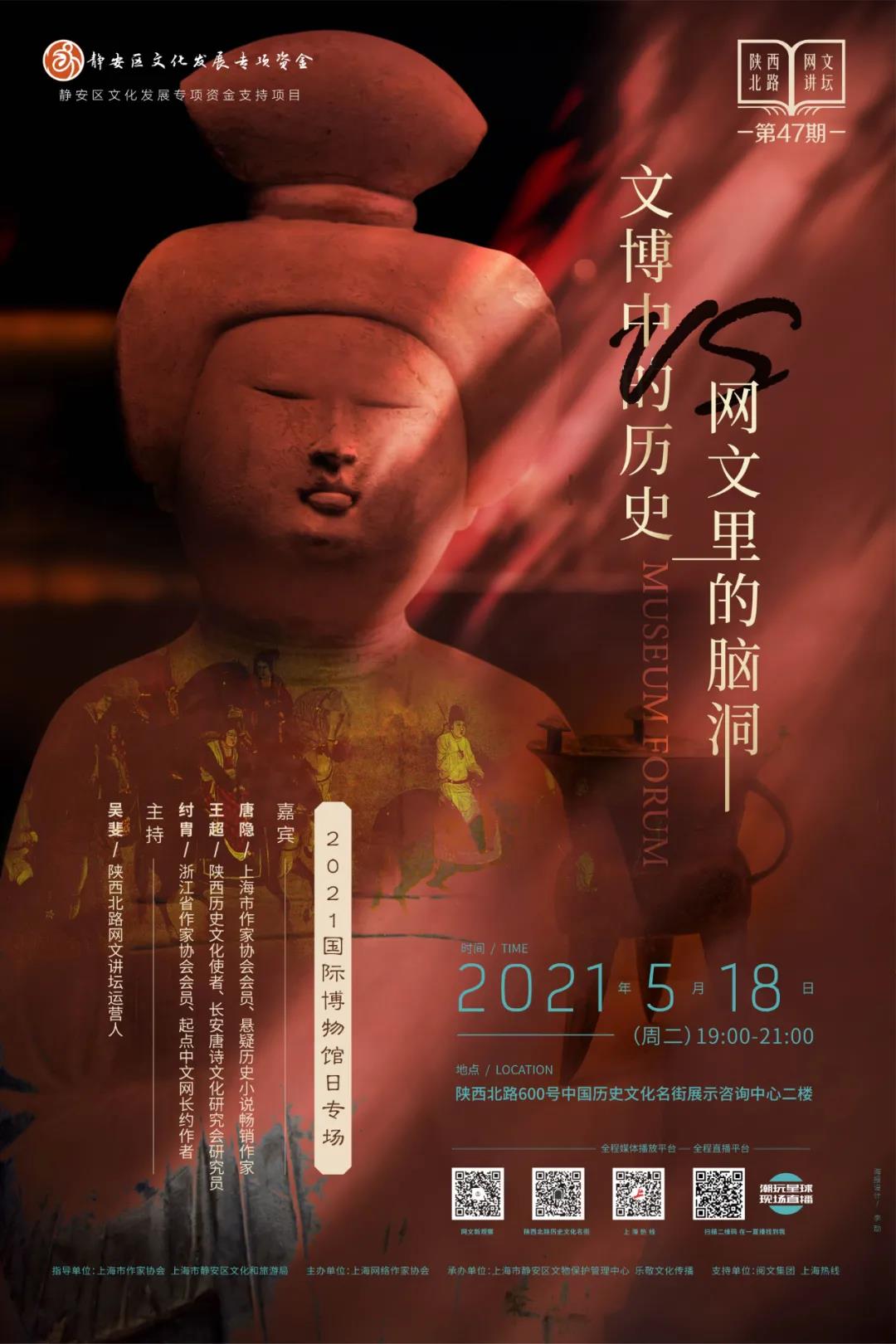 5月18日是國(guó)際博物館日,本期陜西北路網(wǎng)文講壇將舉辦“2021國(guó)際博物館日專(zhuān)場(chǎng)”,邀請(qǐng)來(lái)自西安的”陜西歷史文化使者”王超與兩位擅長(zhǎng)歷史題材的暢銷(xiāo)作家對(duì)話,文博工作者的實(shí)證精神與網(wǎng)絡(luò)作家腦洞大開(kāi)的歷史描繪,常常帶給觀眾和讀者完全不同的歷史認(rèn)知,這次就讓他們?cè)诰W(wǎng)文講壇PK一下。