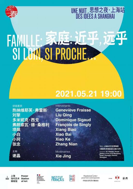 家庭和每個人的生活息息相關(guān),它可能近在咫尺,也可能遙不可及,并且一直處在變化當中。今天我們?nèi)绾谓?jīng)歷和理解家庭生活?身處不同的社會和文化,我們對家庭是否有著同樣的需要、渴望、困惑和不安?我們能否拉近距離而不受束縛,又如何面對自發(fā)的或是被迫的遠離?思想之夜活動于2016年在巴黎創(chuàng)辦。五年來,活動規(guī)模不斷壯大,每一年,在世界各地,都有許多熱情洋溢同時不怎么好對付的觀眾在同一個夜晚圍坐一隅,一個個思想界的重量級嘉賓被包圍在中間,慶祝不同文化、不同領(lǐng)域、不同代際間思想的流轉(zhuǎn)與碰撞!繼“思想之夜”于今年一月首次登陸中國大陸幾座城市之后,上海的首屆“思想之夜”于5月21日,由上海當代藝術(shù)博物館(PSA)攜手法國駐上??傤I(lǐng)事館舉行。今年 “思想之夜”的全球主題是“拉近距離”(proche),其在上海的主題是“家庭:近乎,遠乎”。上海當代藝術(shù)博物館是中國最重要的當代藝術(shù)館,亦是上海雙年展的舉辦地。