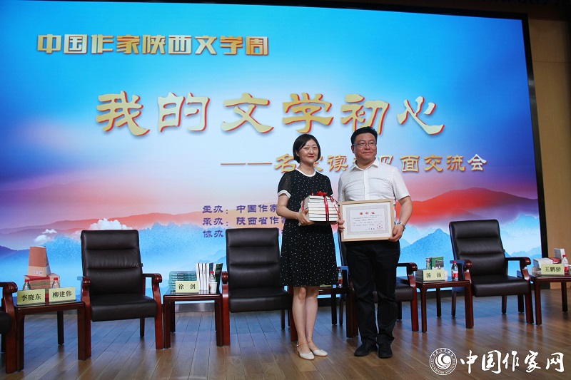 交流會開始前,李曉東代表中國作協(xié)社聯(lián)部向陜西省圖書館贈送《英雄時代》《大國重器》等圖書十種六十冊,陜西省圖書館向中國作協(xié)社聯(lián)部頒發(fā)證書。