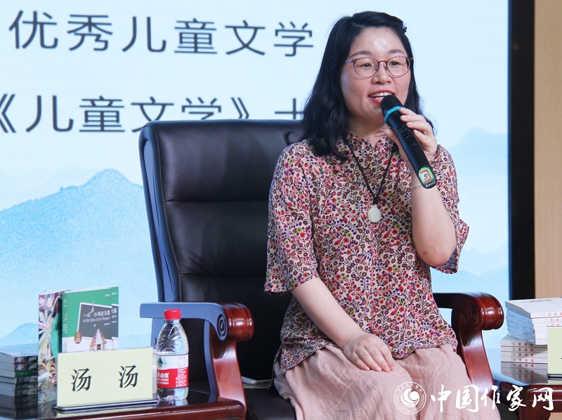 兒童文學(xué)作家湯湯也是一名小學(xué)語文教師,她坦言,還未開始寫作前曾對兒童文學(xué)存有某種偏見,認為兒童文學(xué)講述的就是“王子與公主從此過上了幸福的生活”“大灰狼與小白兔”之類的簡單故事,沒有深刻內(nèi)容,只供兒童閱讀,與成人無關(guān)。通過現(xiàn)場講述童話作品《大海的盡頭在哪里》,她向讀者介紹了自己轉(zhuǎn)變偏見的過程,認為兒童文學(xué)其實并不簡單,它的內(nèi)涵極其豐富;兒童文學(xué)也能反映現(xiàn)實生活,揭露社會現(xiàn)狀;優(yōu)秀的兒童文學(xué)作品可以激發(fā)孩子們的創(chuàng)造力與想象力。她希望自己能繼續(xù)保持文學(xué)初心,用愛與智慧,為孩子們寫出更多更好的兒童文學(xué)作品。