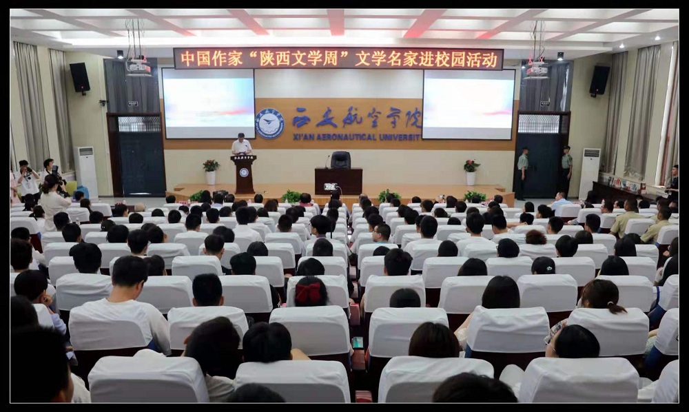 6月9日下午,由中國作協(xié)社會聯(lián)絡部主辦,陜西省作協(xié)承辦,西安航空學院協(xié)辦的“文學名家進校園”活動在西安航空學院舉辦。中國作協(xié)社會聯(lián)絡部副主任李曉東,陜西省作協(xié)黨組成員、副主席安廣文,西安航空學院黨委書記陳平社,陜西省作協(xié)副主席、西安航空學院人文學院院長高建群,陜西省作協(xié)秘書長、機關黨委副書記王曉渭,西安航空學院副校長宋文學等,以及西安航空學院300余名師生代表參加活動?;顒佑晌靼埠娇諏W院黨委副書記韓明軍主持。作家柳建偉、徐劍、金仁順、湯湯、王鵬驕作主題演講,并與在場師生就文學話題進行問答交流。