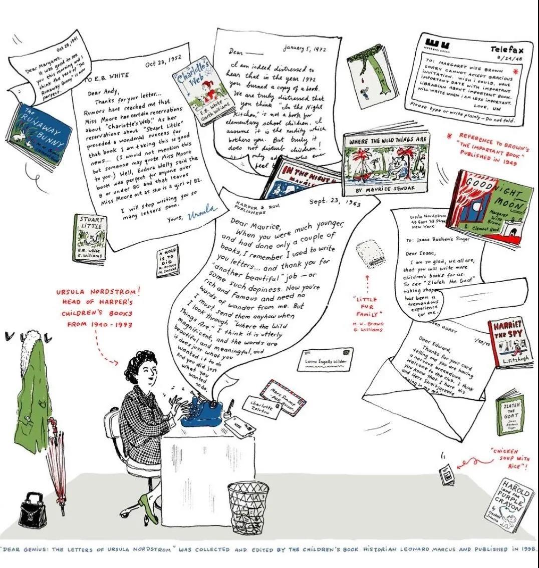 厄蘇拉就像一個尋寶人,發(fā)現(xiàn)、鼓勵、呵護(hù)著每一個才華橫溢、尊重孩子、相信童年復(fù)雜性的創(chuàng)作者。桑達(dá)克、溫格爾、瑪格麗特·懷茲·布朗、謝爾·希爾維斯坦、E.B.懷特……在厄蘇拉的幫助之下,新鮮血液們成長為中堅力量。通過新一代童書,這個國家的人們重新認(rèn)識了兒童。
