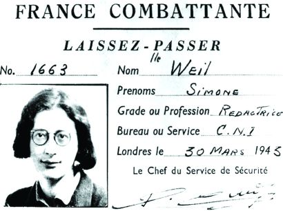 納粹占領(lǐng)期間,薇依參加抵抗運(yùn)動(dòng)時(shí)的通行證