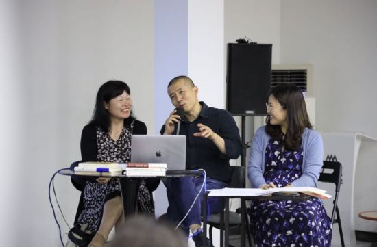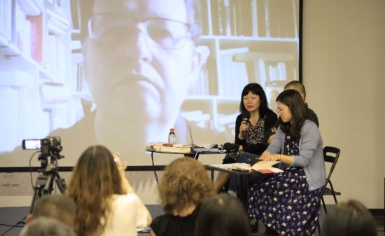 翻譯家黃葒(左)對(duì)談作家畢飛宇(中)