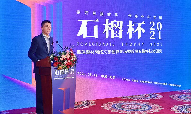 6月19日,民族題材網(wǎng)絡(luò)文學(xué)創(chuàng)作論壇暨首屆石榴杯征文大賽頒獎典禮在北京舉行。作為國家民委主辦的“中華民族全家?!毕盗谢顒又唬讓檬癖魑拇筚惖玫搅藝颐裎幕麄魉竞椭袊贁?shù)民族文化藝術(shù)促進會的指導(dǎo)與支持,由閱文集團聯(lián)合中國民族文化資源庫、中國民族文化資源網(wǎng)、天成嘉華文化傳媒共同舉辦。