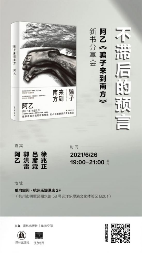 杭州|不滯后的預(yù)言——阿乙《騙子來(lái)到南方》新書(shū)分享會(huì)