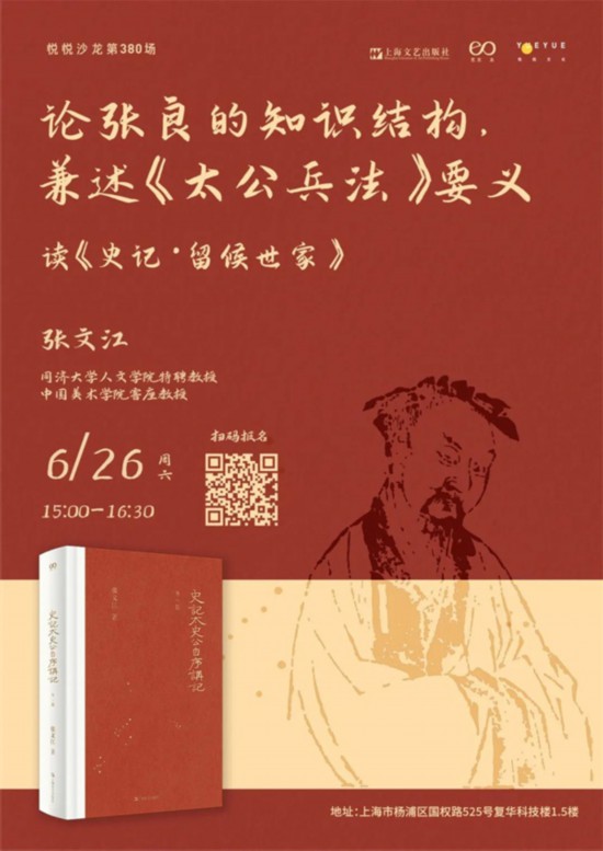 本場(chǎng)講座,嘉賓張文江教授將通過(guò)解析《史記·留侯世家》的相關(guān)內(nèi)容,探討西漢第一功臣張良的知識(shí)結(jié)構(gòu),兼述《太公兵法》的流傳及其要義,理解圯上老父不言之教的內(nèi)容。