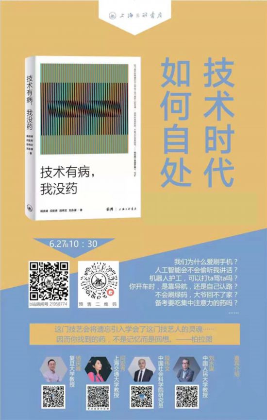 享用技術(shù)的后果,還是放棄技術(shù)的便利,生活在現(xiàn)代社會(huì)中的每個(gè)人,恐怕是沒(méi)有選擇權(quán)的——技術(shù),代理了種種生活方式。楊慶峰、閆宏秀、段偉文、劉永謀這幾位技術(shù)哲學(xué)的專業(yè)人士愿意半正經(jīng)半調(diào)侃地說(shuō)道說(shuō)道在技術(shù)的未來(lái)中的人。他們想了8個(gè)主題,寫(xiě)了32篇半命題作文,表達(dá)各自相似或相反的觀點(diǎn),互相角力。這組文章,一部分在“澎湃·思想市場(chǎng)”上刊發(fā)過(guò),在網(wǎng)絡(luò)的互聯(lián)技術(shù)之下,擁有100萬(wàn)+的點(diǎn)擊率?,F(xiàn)在幾位作者將這些文章匯成了一本小書(shū)。6月27日上午,在山腳下的書(shū)店(佛山路店),請(qǐng)聽(tīng)他們的話題:技術(shù)時(shí)代與人類增強(qiáng)。