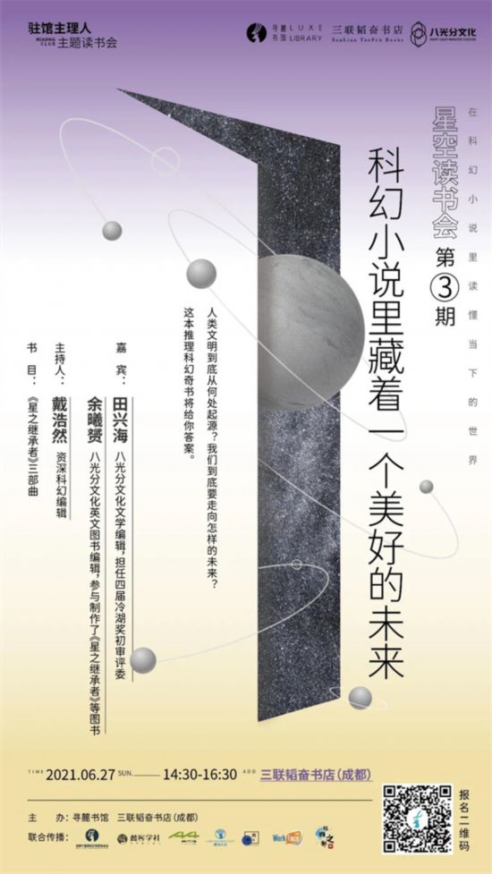 6月27日,資深科幻編輯戴浩然將邀請(qǐng)《星之繼承者》責(zé)編田興海和余曦赟,一起為你揭秘人類文明到底從何處起源?我們到底要走向怎樣的未來(lái)?我們?nèi)栽敢庀嘈牛荷倳?huì)找到出路!億萬(wàn)年前驅(qū)使魚(yú)爬上岸的那股動(dòng)力,億萬(wàn)年后推動(dòng)我們奮斗一生!不管人類來(lái)自何方,這億萬(wàn)星辰已交由我們來(lái)繼承!