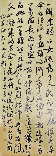本篇章以微觀的視角再現(xiàn)一幕幕感人心魄的生動(dòng)畫(huà)面,真實(shí)有力地記錄在中國(guó)共產(chǎn)黨的正確領(lǐng)導(dǎo)下,中國(guó)人民為了崇高理想英勇奮斗的悲壯史詩(shī),為中國(guó)共產(chǎn)黨史提交一份書(shū)法形式的史實(shí)文獻(xiàn)。