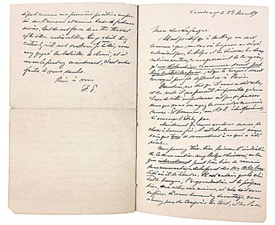 《致保爾·拉法格》弗里德里希·恩格斯 法文鋼筆手書(shū)原稿2頁(yè)(正反面) 1889年3月寫(xiě)于英國(guó)倫敦。