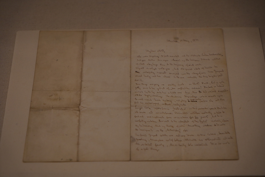 展覽中馬克思的一件《致燕妮》開始,該信是馬克思與小女兒艾琳娜在曼徹斯特恩格斯家中做客時寫給女兒燕妮的信。信中,馬克思談到了恩格斯當時正在撰寫的著作《愛爾蘭史》和弗·阿·朗格的工人問題。