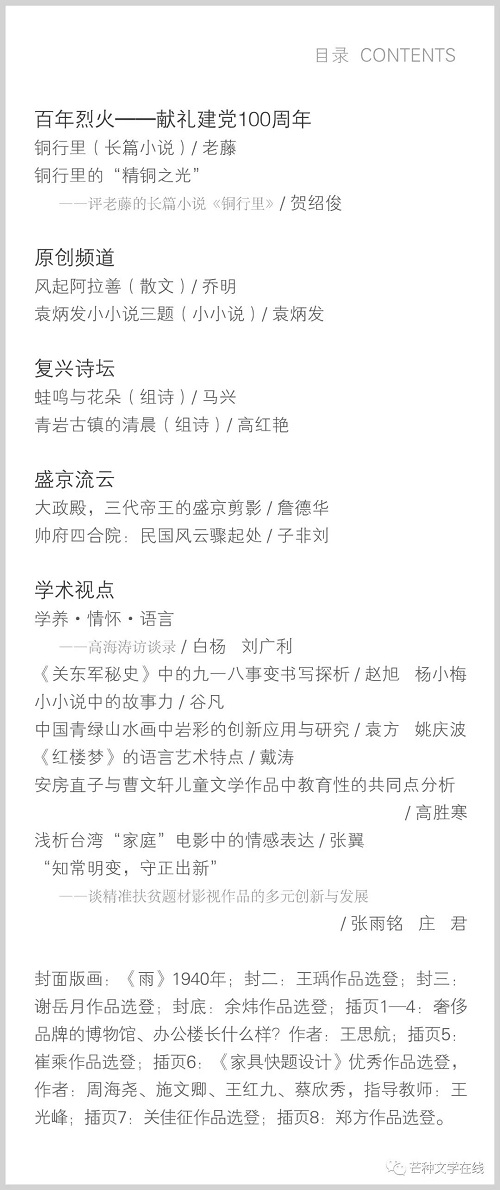 《芒種》2021年第6期目錄