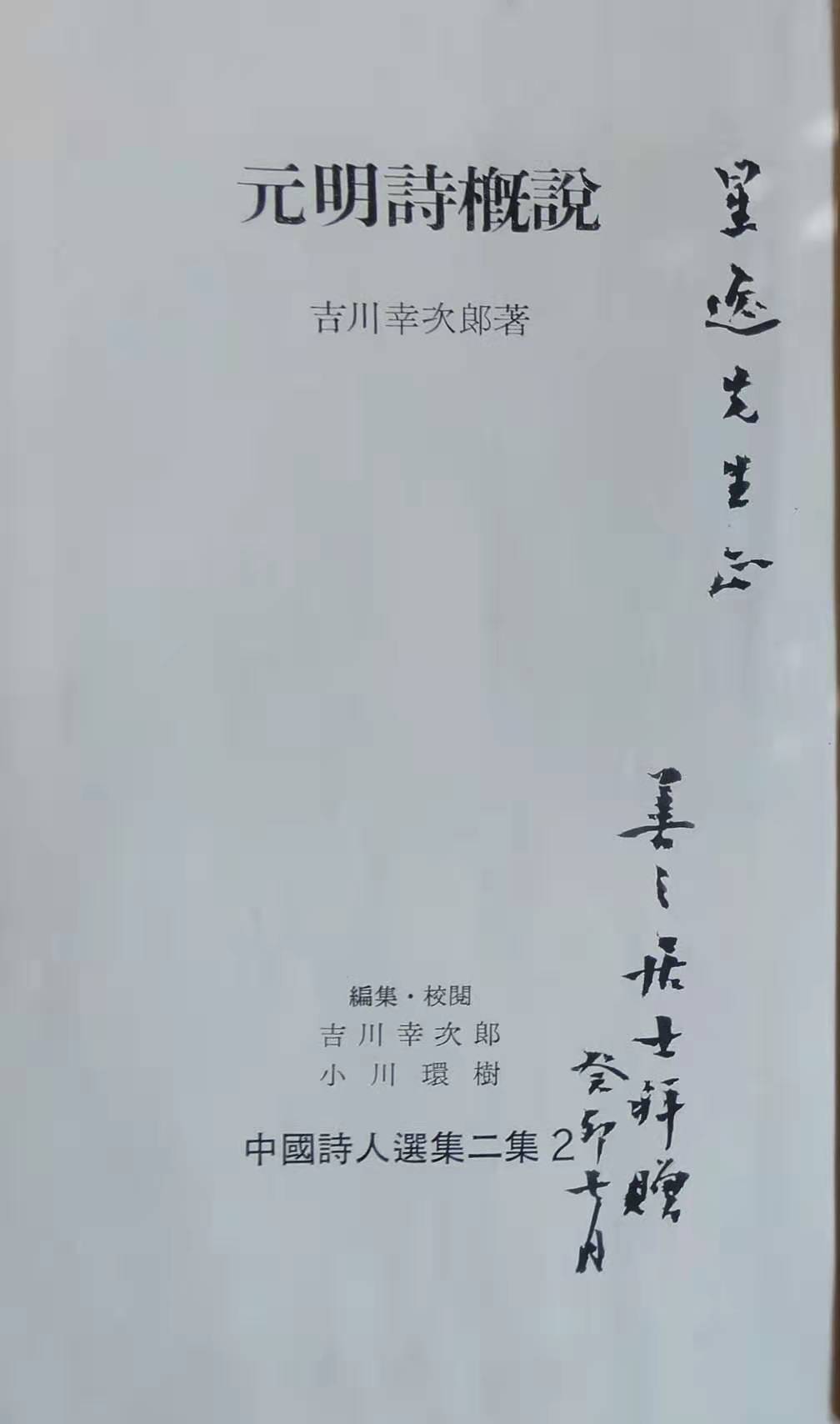 吉川幸次郎(善之居士)寄贈(zèng)給張心逸的《元明詩概說》