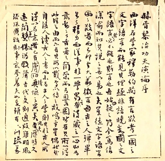 幸而1879年至1894年這十余年間,較為清閑和平靜的職場(chǎng)生活為嚴(yán)復(fù)在教務(wù)之余研習(xí)西學(xué)提供了合適的環(huán)境。1881年,嚴(yán)復(fù)初讀英國(guó)學(xué)者斯賓塞(Herbert Spencer)的《社會(huì)學(xué)研究》(The Study of Sociology),后來(lái)他又選譯了斯賓塞的《倫理學(xué)原理》(Principles of Ethics)(譯為《群誼篇》)和白芝浩(Walter Bagehot)的《物理與政治》(Physics and Politics)(譯為《格致治平相關(guān)論》),可惜這兩部譯稿均已散佚。1893年左右,他開始翻譯宓克(A.Michie)的《傳教士在中國(guó)》(Missionaries in China)。這一時(shí)期嚴(yán)復(fù)對(duì)西方相關(guān)學(xué)術(shù)理論著作的閱讀和翻譯為他下一階段著譯作品的集中產(chǎn)出作了鋪墊。