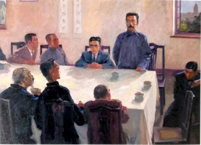 圖20 魯迅在廣州中山大學(xué)校務(wù)會(huì)議上 韋啟美 約1973年 油畫(huà)