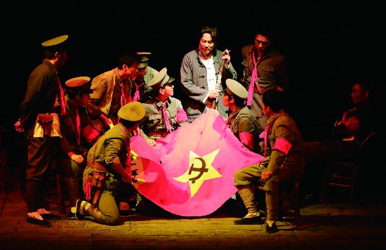 在共和國(guó)的紀(jì)念碑上,有很多為了理想舍生忘死的共產(chǎn)黨員的英名,他們用生命履行“永不叛黨”的入黨誓言。南京市話劇團(tuán)演出的《雨花臺(tái)》表現(xiàn)的是極端情境下的舍生取義。1927年蔣介石發(fā)動(dòng)反革命政變,大肆屠殺共產(chǎn)黨員,當(dāng)敵人的“自白書(shū)”擺在面前,保持對(duì)黨的忠誠(chéng)就等于親手簽署了自己的死亡令。惲代英、許包野、施滉、冷少農(nóng)、袁咨桐等共產(chǎn)黨員被關(guān)押,遭毒打,但是他們寧可壯烈地死,決不茍且地生。劇中,中共江蘇省委書(shū)記、曾經(jīng)獲得德國(guó)奧地利兩國(guó)哲學(xué)博士的許包野就義前對(duì)中共河北省委書(shū)記、曾經(jīng)的莫斯科中山大學(xué)教授施滉說(shuō):“你我付出一人之生命,或許就將新中國(guó)的誕生提前了一個(gè)小時(shí),萬(wàn)千同仁付出生命,則理想之國(guó),近在咫尺。這美好的一天,就留給后人吧!”這些英烈用他們的血肉之軀,譜寫(xiě)了感天動(dòng)地的正氣歌,表現(xiàn)出與日月同輝、與山河同在的精神品質(zhì)。