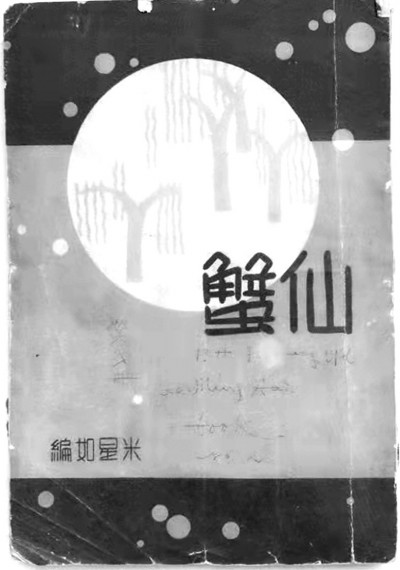 商務(wù)印書館刊登的《仙蟹》出版廣告稱:“米星如編《仙蟹》等十二篇,系從我國固有的傳說和外國的名著里,撿取了最動(dòng)人的故事,用美妙的文筆寫成的,不但供人欣賞,并且給與讀者一種新生命的感覺?!泵仔侨绨选断尚贰菲诙就捈瘯梢妼?duì)此篇的看重。沒落鄉(xiāng)紳殷久從漁民處買了30斤螃蟹進(jìn)城去賣,因不會(huì)料理,蟹全死了,只剩下一只缺兩條腿的蟹還活著。一老者愿花二百元買下此缺腿蟹,還請(qǐng)殷久到自己家中喝酒。乘著酒興老者告訴殷久,那是只來自龍宮的仙蟹,中秋夜會(huì)變成馬匹那樣高大,升天去月宮參加嫦娥的宴請(qǐng),不過仙蟹很快要回來。我有了它還愁什么呢? 殷久聽了,悄悄把仙蟹帶回。中秋夜仙蟹果然顯靈,他騎上蟹背飛往月宮,折得月桂樹上兩根樹枝,隨仙蟹回到了家。月桂樹枝成了金子,殷久家從此富裕了起來。鄰居知道后,向殷久借得仙蟹游月宮,因貪得無厭,折了許多枝月桂,仙蟹到時(shí)飛回地球,而那貪心的鄰居留在了月宮再也會(huì)不了家。故事的意義并不深?yuàn)W,想象卻很奇特。
