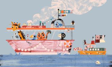 本屆插畫展主視覺獎(jiǎng)來自英國插畫師卡莉·格萊德希爾(Carly Gledhill)的獲獎(jiǎng)作品《抵達(dá)》。這組色彩繽紛的作品描繪了各種鮮有交集的小動物,乘坐不同的交通工具,開啟了天空、海洋與深海之旅。俏皮可愛的動物造型、五彩斑斕的顏色組合,為觀眾開啟了一段奇異而美妙的幻想之旅。在全球疫情仍在蔓延的當(dāng)下,為世界各地的大小朋友帶來溫暖,療愈心靈。