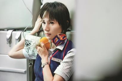 《中國(guó)機(jī)長(zhǎng)》中,由于劇情需要,人物都帶著氧氣面罩,演員全靠眼睛表達(dá)在極端情境下人物情緒的掙扎。當(dāng)袁泉扮演的乘務(wù)長(zhǎng)畢男在機(jī)艙突遇釋壓后盡力平穩(wěn)乘客們的情緒,試圖確定乘務(wù)組人員的安全,從發(fā)現(xiàn)李沁扮演的周雅文被氣流撞擊暈倒的不安和焦急到后來(lái)周雅文終于回到工作崗位的踏實(shí)和欣慰,這些復(fù)雜的情緒完全由她那雙秀麗的、帶有異國(guó)風(fēng)味的大眼睛詮釋?zhuān)猴柡瑹釡I又極力克制,后用堅(jiān)定的眼神和穩(wěn)定的聲音安撫慌張的乘客們。