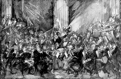 馬克斯·奧本海默的畫作《樂團(tuán)》,圖中馬勒在指揮維也納愛樂樂團(tuán)。資料圖片