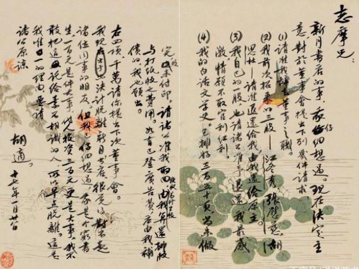 1928年1月28日,在寫(xiě)給徐志摩的一封信中,胡適擬對(duì)新月書(shū)店董事會(huì)提出幾個(gè)請(qǐng)求。其中,第一個(gè)請(qǐng)求是“請(qǐng)準(zhǔn)我辭去董事之職”。據(jù)胡適所言,他是“仔細(xì)想過(guò)”才“決定主意”。從中,我們知道,胡適做過(guò)新月書(shū)店董事。