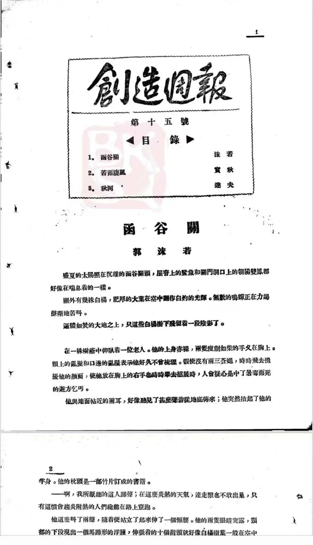 郭沫若在《創(chuàng)造周刊》1923年第15號發(fā)表《函谷關(guān)》