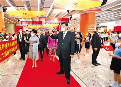 習(xí)近平指出,我一直關(guān)注著香港,掛念著香港,我的心和中央政府的心始終同香港同胞在一起。過去一個(gè)時(shí)期,香港經(jīng)受一次次嚴(yán)峻考驗(yàn),戰(zhàn)勝一個(gè)個(gè)風(fēng)險(xiǎn)挑戰(zhàn),歷經(jīng)風(fēng)雨后,香港浴火重生,展現(xiàn)出蓬勃的生機(jī)。事實(shí)證明,“一國兩制”具有強(qiáng)大生命力,是確保香港長期繁榮穩(wěn)定、維護(hù)香港同胞福祉的好制度。