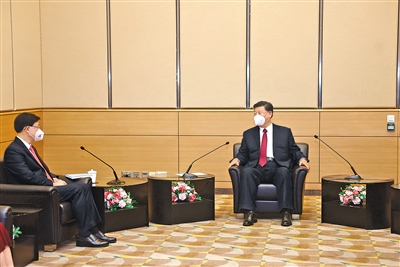 丁薛祥、許其亮、沈躍躍、王毅、夏寶龍參加有關(guān)會見。