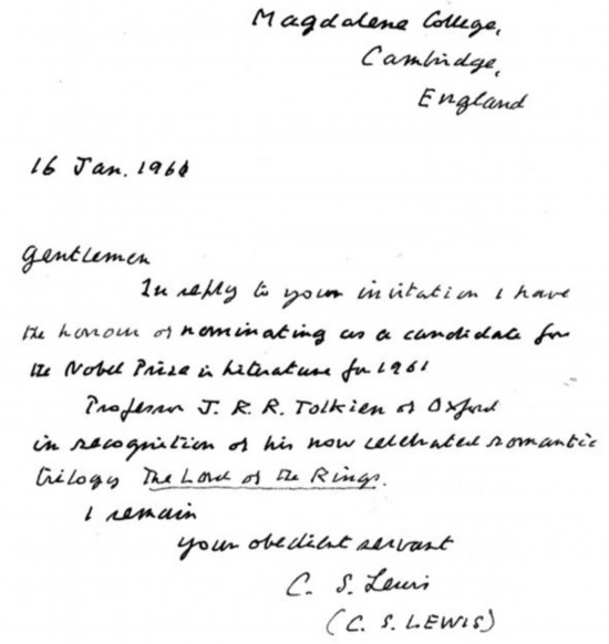 劉易斯提名托爾金《魔戒》的信件,來自《C.S.路易斯:天賦奇才,勉為先知》([英]麥格拉思著,蘇欲曉、傅燕暉譯,上海三聯(lián)書店2018年5月版)
