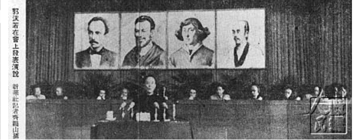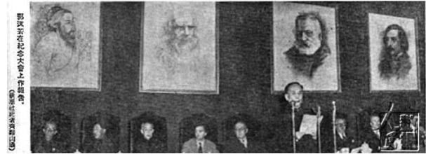 1953年9月27日,北京中南海懷仁堂,郭沫若在世界四位文化名人紀(jì)念大會上發(fā)表演說