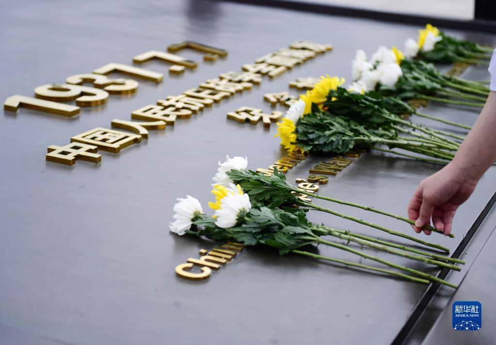 9月18日,中國人民抗日戰(zhàn)爭紀(jì)念館的工作人員向獨立自由勛章雕塑獻(xiàn)花。新華社記者 張晨霖 攝