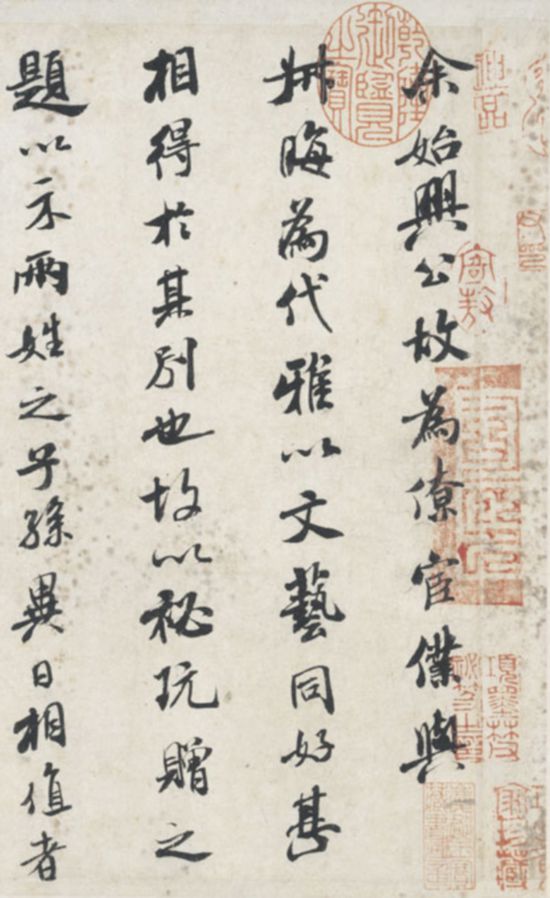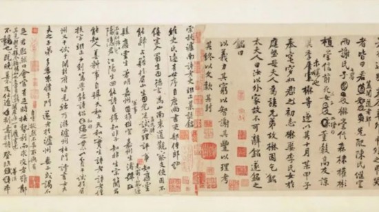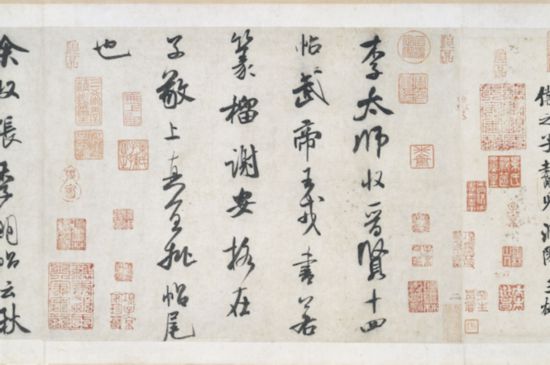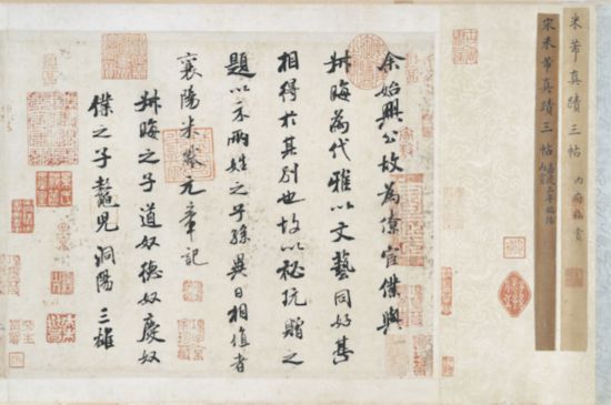 據(jù)悉,米芾三帖卷,明清時期屢見著錄,如明汪砢玉《珊瑚網(wǎng)》法書題跋卷六、郁逢慶《郁氏書畫題跋記》卷四,清吳其貞《書畫記》卷四、卞永譽(yù)《式古堂書畫匯考》書卷之十一(錄自《珊瑚網(wǎng)》)、安岐《墨緣匯觀》法書上卷等。上述諸家著錄中,或僅為一帖,或為四帖(《張季明帖》后有《倒念揭諦咒》帖),或為七帖。至明項元汴收藏時為三帖(見卷后項氏跋記),即后之安氏藏本(見《墨緣匯觀》)。故疑米芾此三帖,明末清初時已屢經(jīng)割裂、分拆、拼湊及重裱,亦不排除某些著錄中非今傳之物。該書法作品后經(jīng)原田悟朗、阿部房次郎、阿部孝次郎收藏后,最終成為東京國立博物館藏品。